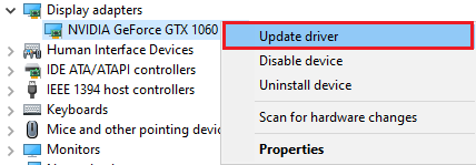 - Expand Display Adapters, then right-click on your graphics adapter.