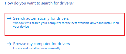 - You will then be presented with two options; select Search automatically for updated driver software.