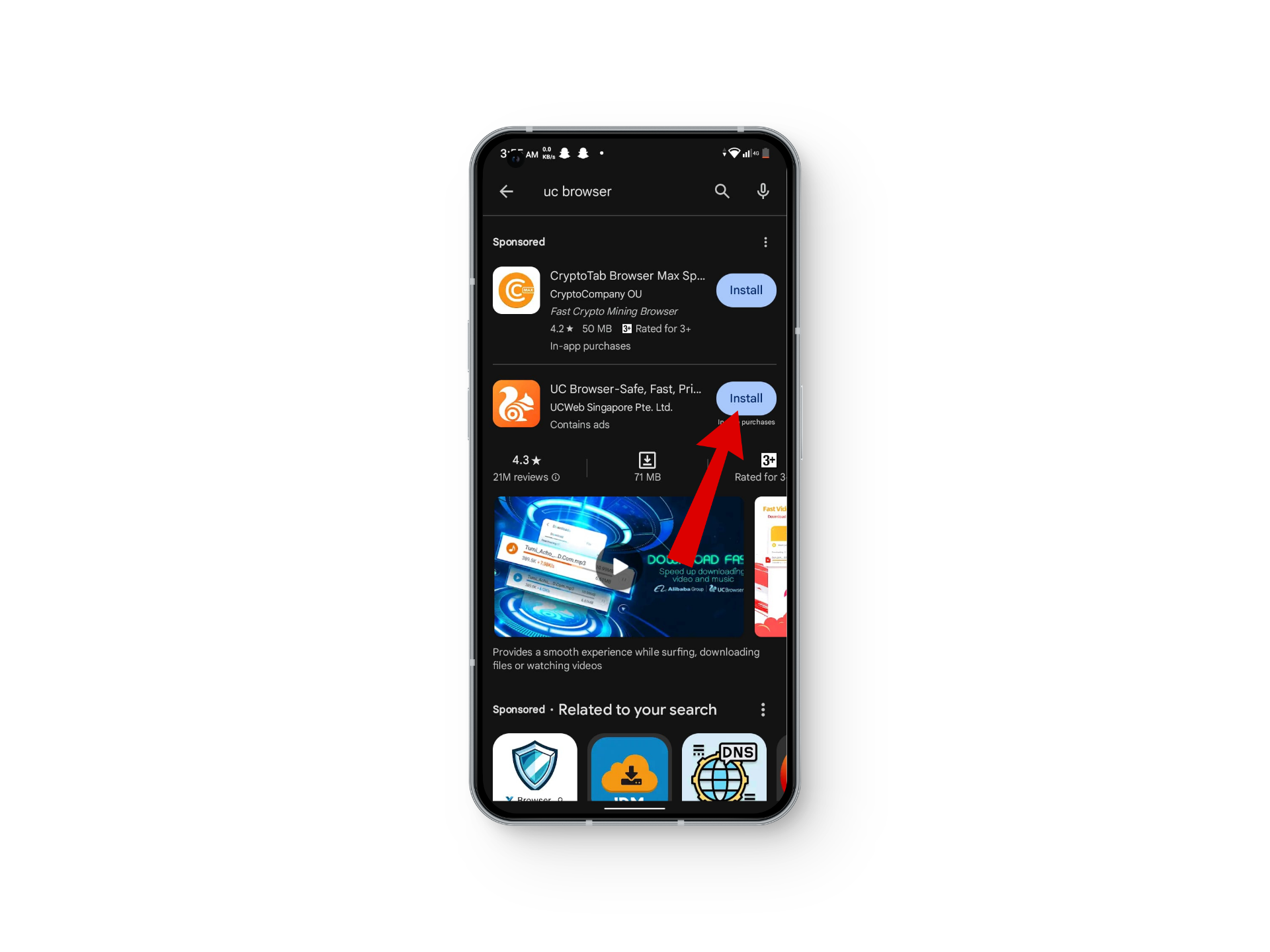 Search for uc browser - Now head over to the search bar and type UC Browser.