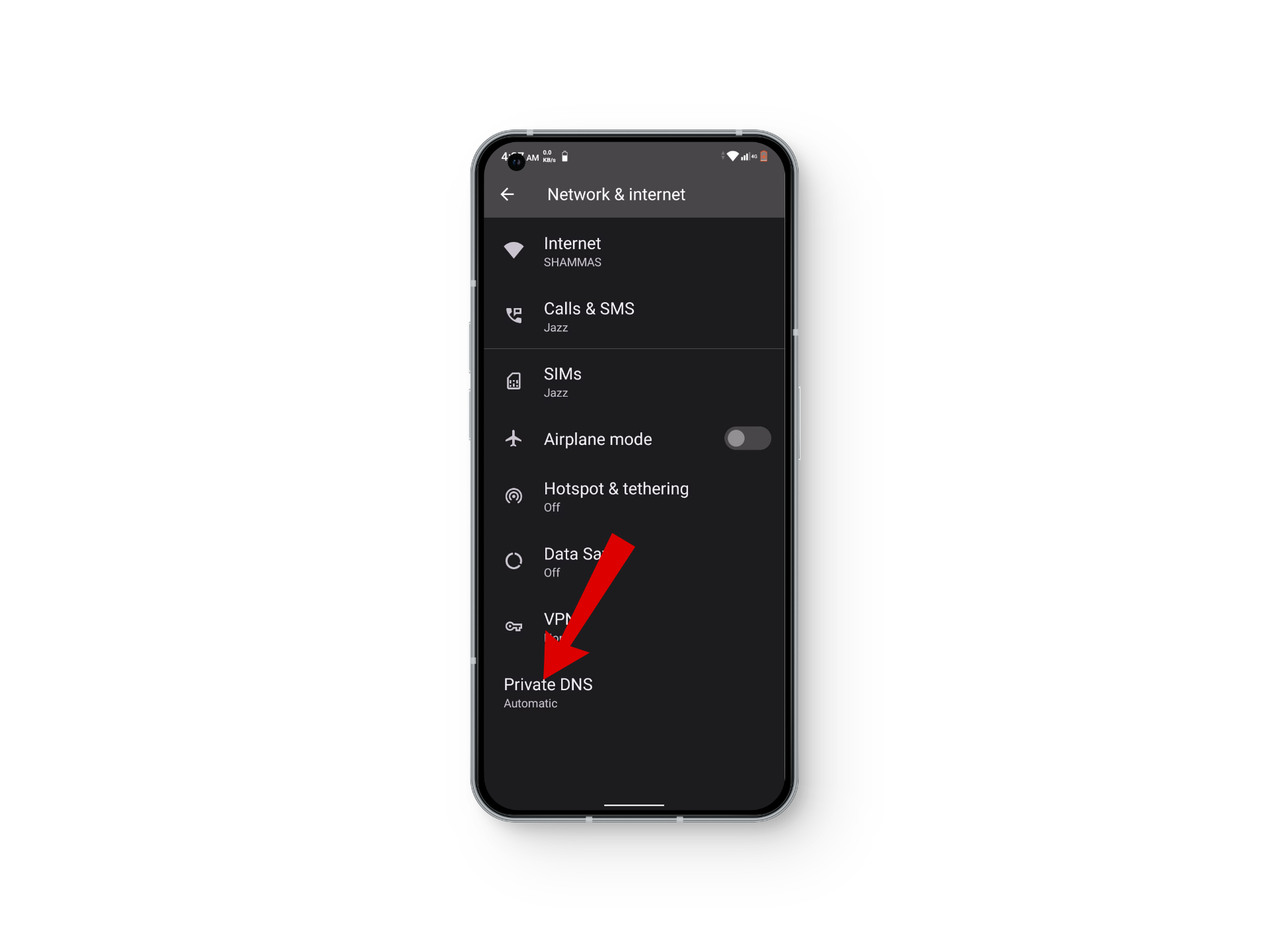 Tap on Network & internet - Next, scroll down and tap on Private DNS.