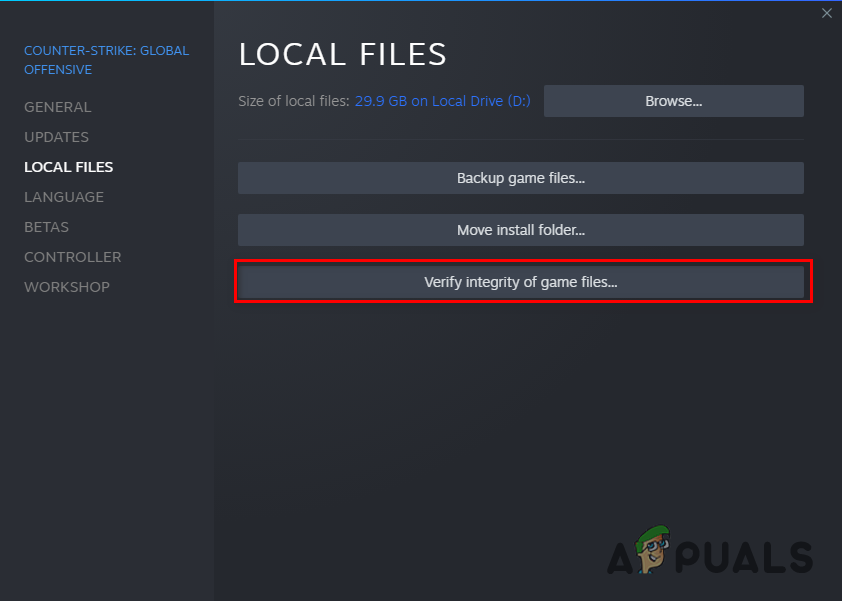 - Click Verify Integrity of Game Files.