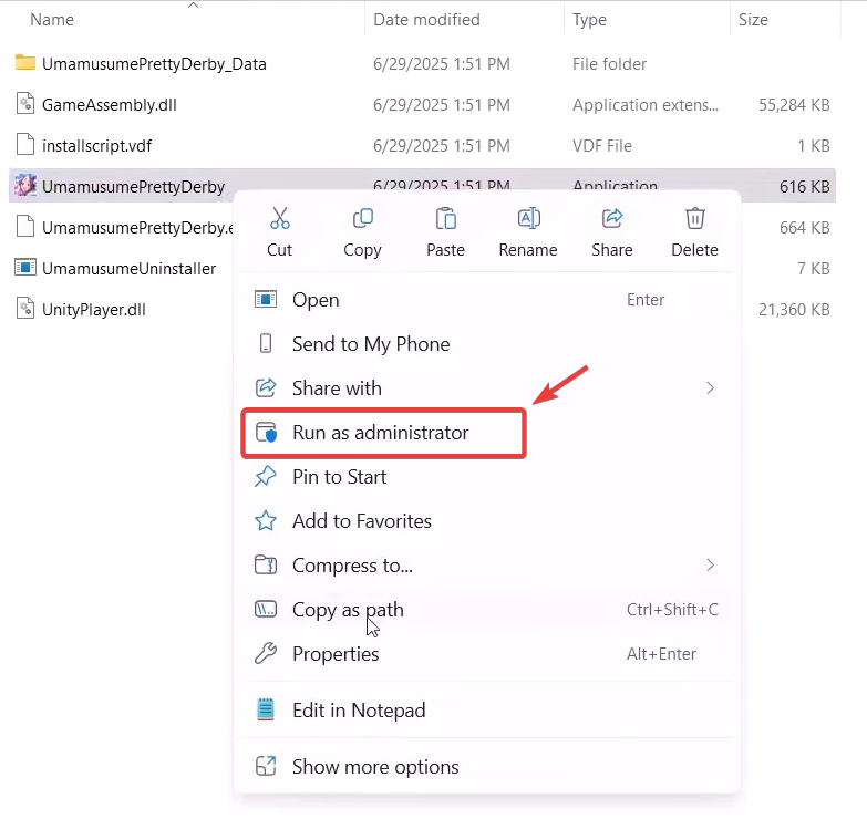 - Make sure Umamusume Pretty Derby and related launchers are fully closed.