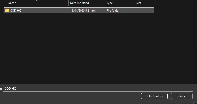 - Select the folder where your Black Ops 6 is installed, which will be named as COD HQ if downloaded through the Steam client.