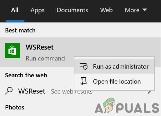 - Click on the Windows button to launch the Windows menu and in the search bar, type WSReset. Now right-click on the WSReset (in the results pulled by search) and select Run as Administrator.
