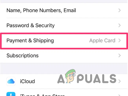 Apple ID - In your Apple ID settings, tap on the Payment & Shipping option provided.