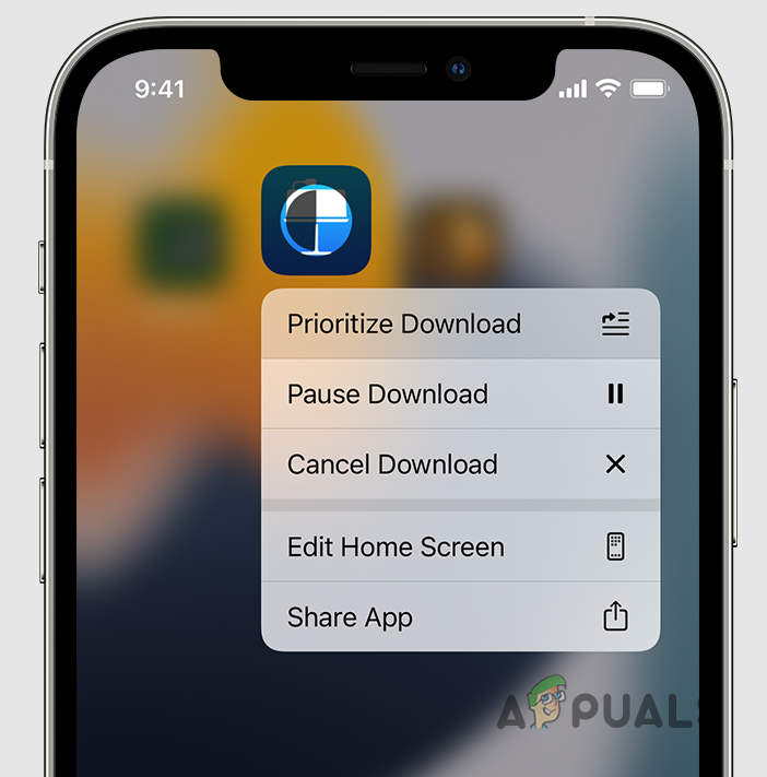 Downloading App Menu - Once you have done that, hold the app again and tap the Resume Download button.