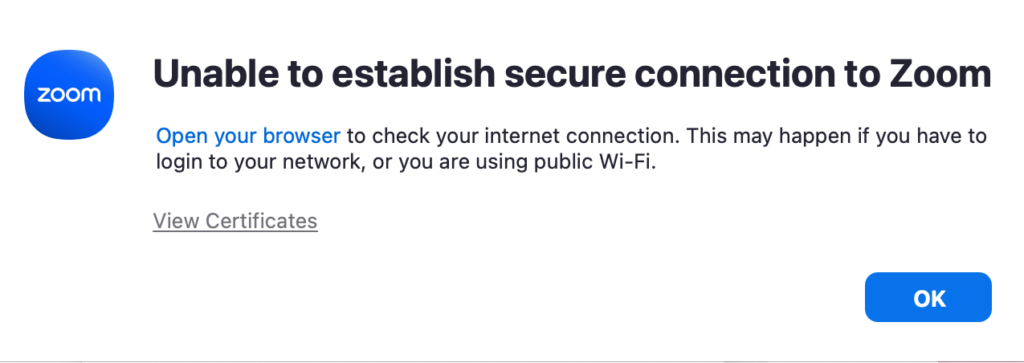 Fix: Unable to establish secure connection to Zoom