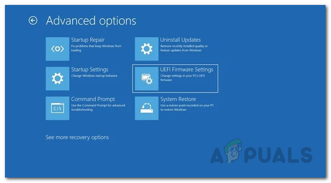 - After that, on the Advanced options screen, click on the UEFI Firmware Settings option.