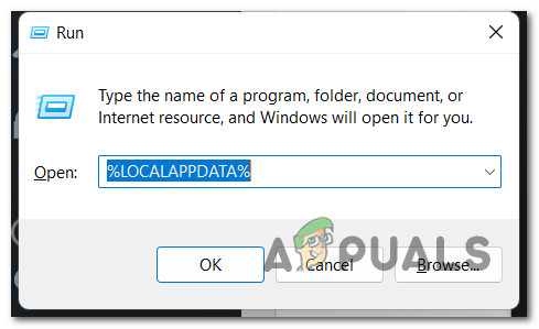 - Press Windows key + R to open up a Run dialog box. Next, type ‘%LOCALAPPDATA%’ inside the text box and press Enter to open the hidden Local App data folder.