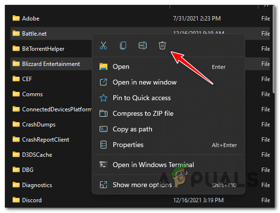 Other users that we’re also dealing with this issue have managed to get the issue fixed by accessing the %LOCALAPPDATA% folder and deleting the Battle.net and Blizzard Entertainment folder.