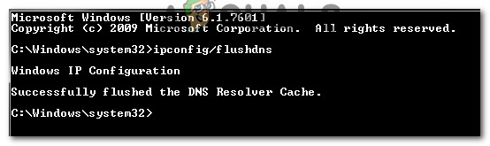 - Corrupted DNS Cache – According to some affected users, this problem can also appear in a situation where the data exchange protocols are being inhibited by a corrupted DNS cache. In this case, flushing the DNS cache should fix the issue.