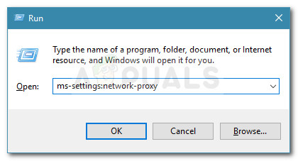 - Next, from the next menu, type ”ms-settings:network-proxy’ and press Enter to open up the Proxy tab of the Settings app.
