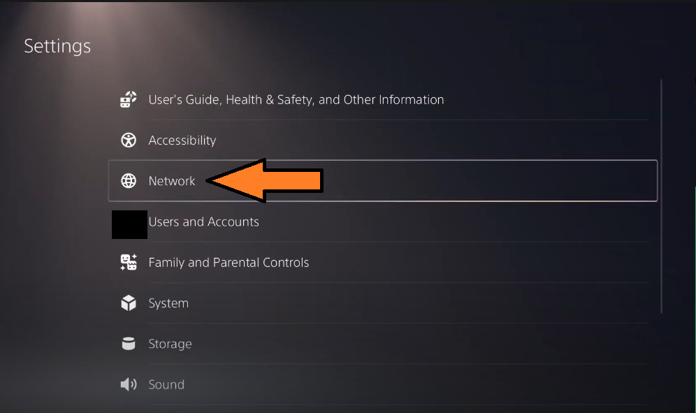 Accessing the PS5 settings - Once you’re inside the Settings menu, access the Network settings, then choose Settings once again.