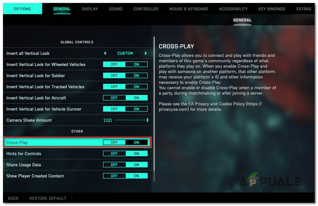 - Crossplay is Enabled – Ever since EA started the early access program for Battlefield 2042, there are a lot of underlying issues associated with crossplay matchmaking. Unless you are explicitly making use of this feature, you’ll be probably better off by disabling crossplay completely (regardless if you’re on consoles or PC).