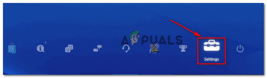 - From the home screen of your PlayStation 4 system, cycle through the vertical menu at the top to Settings.