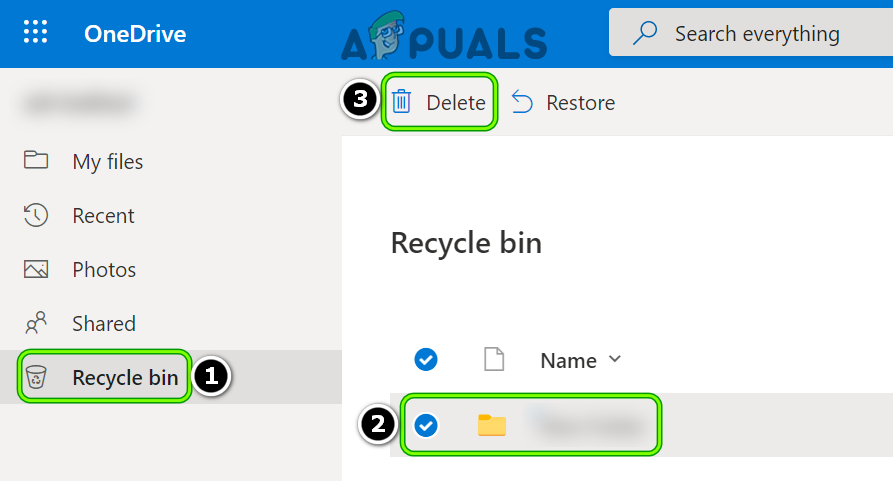 Remove the Problematic Folder from the OneDrive Web - Then, in the left pane, navigate to the Recycle Bin tab and select the deleted shortcut.