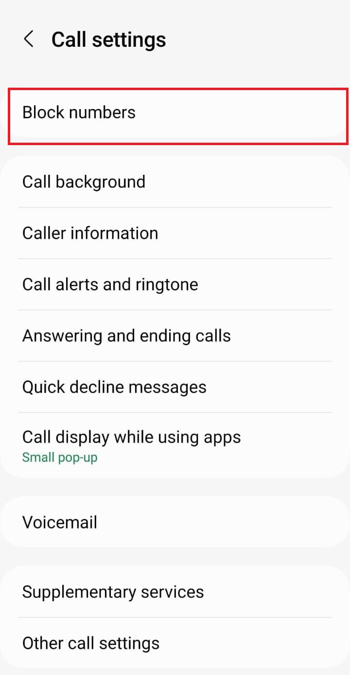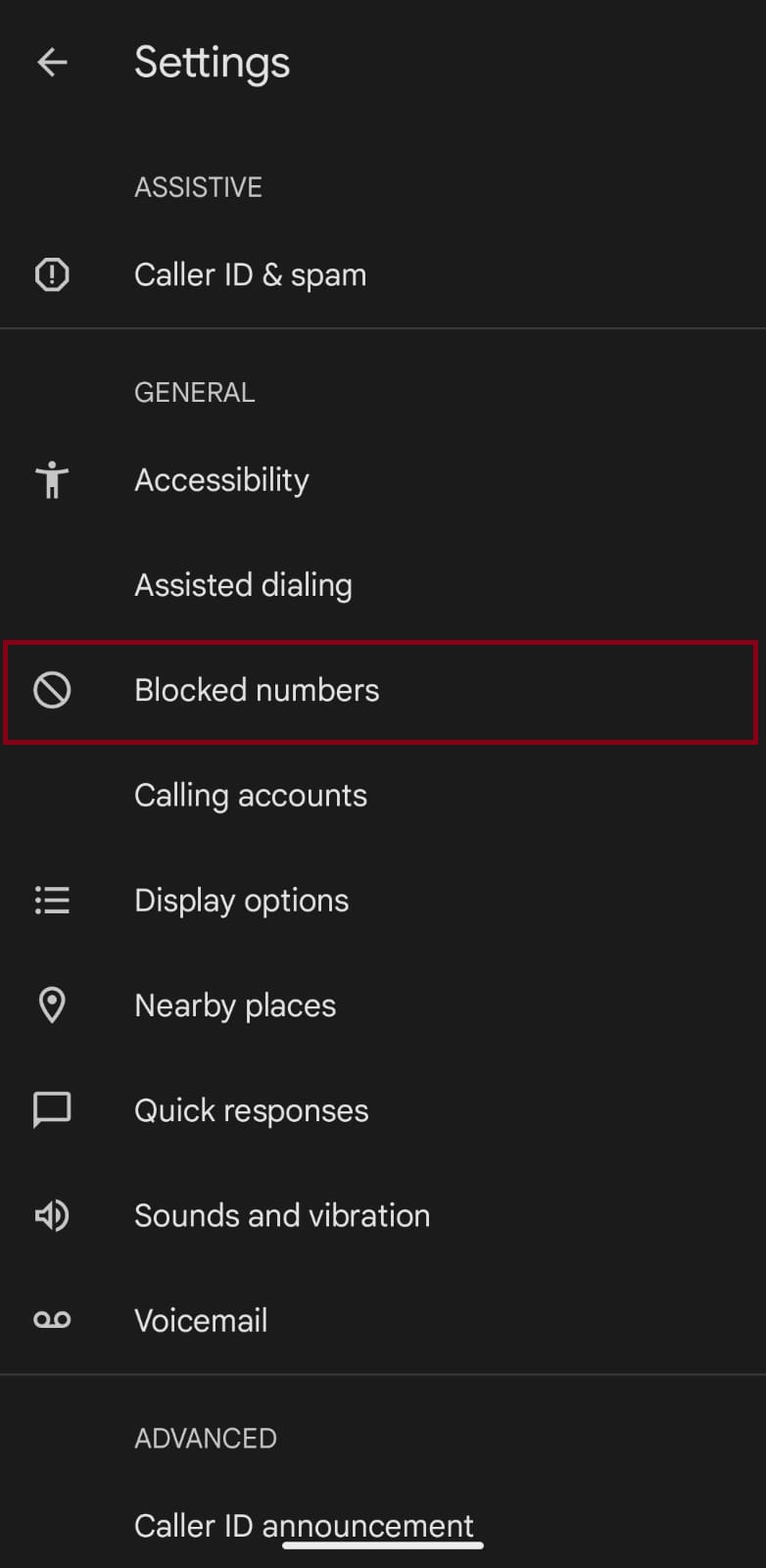 - Tap on Blocked Numbers under the General section.