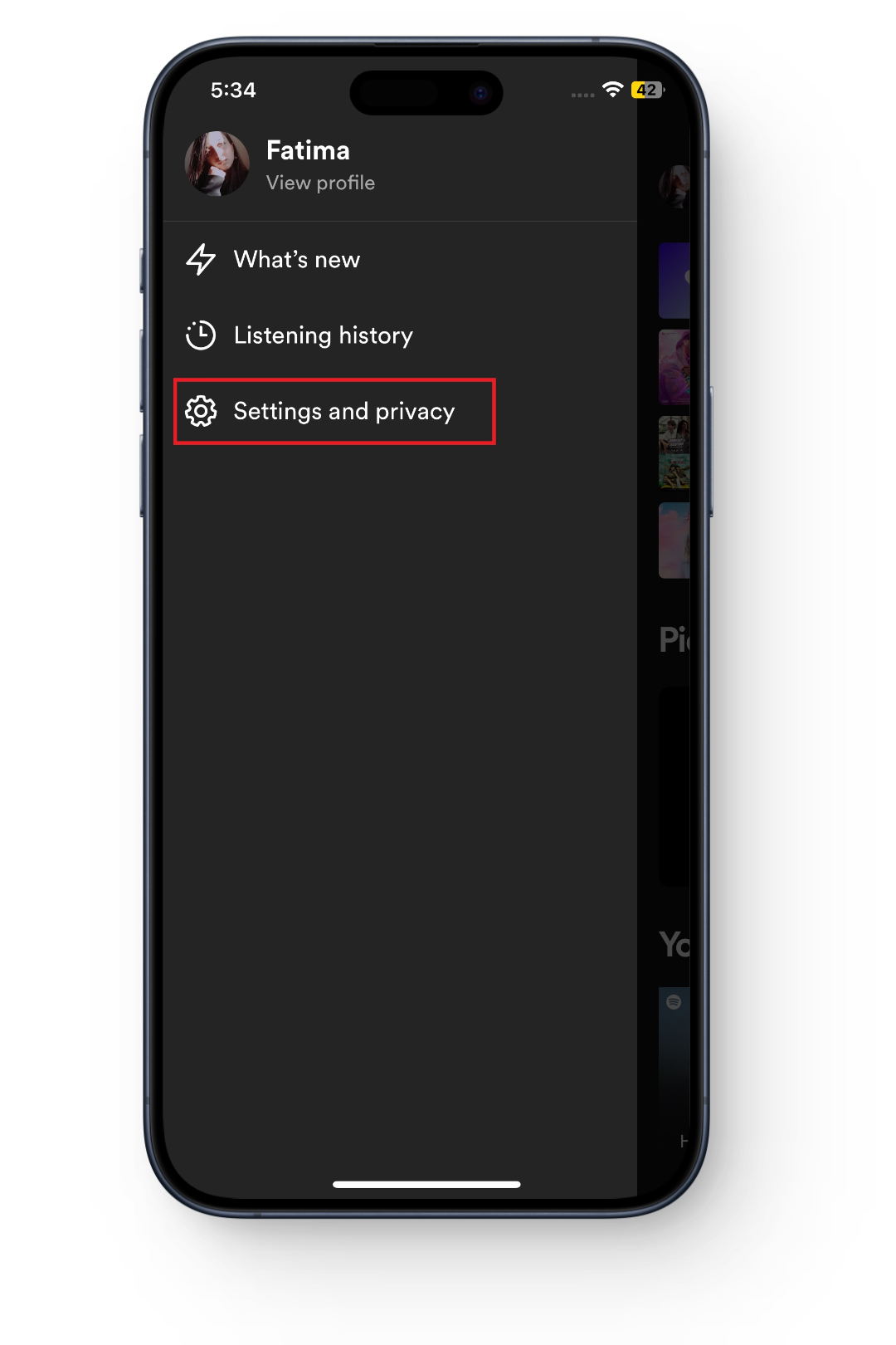 - Open Spotify and tap your profile picture in the top left corner of the screen.