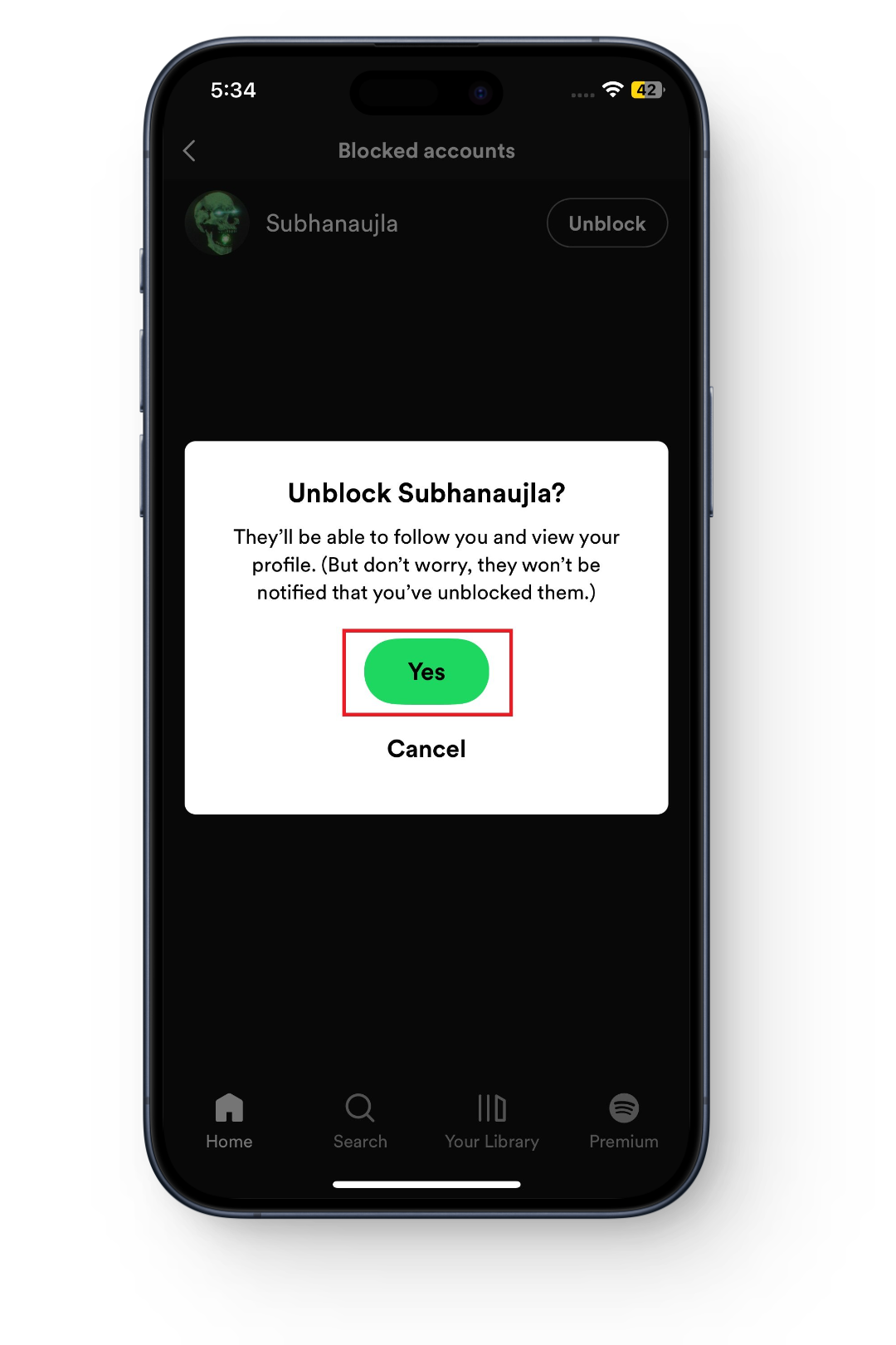 ⤷ Unblocking Someone on Spotify Mobile App