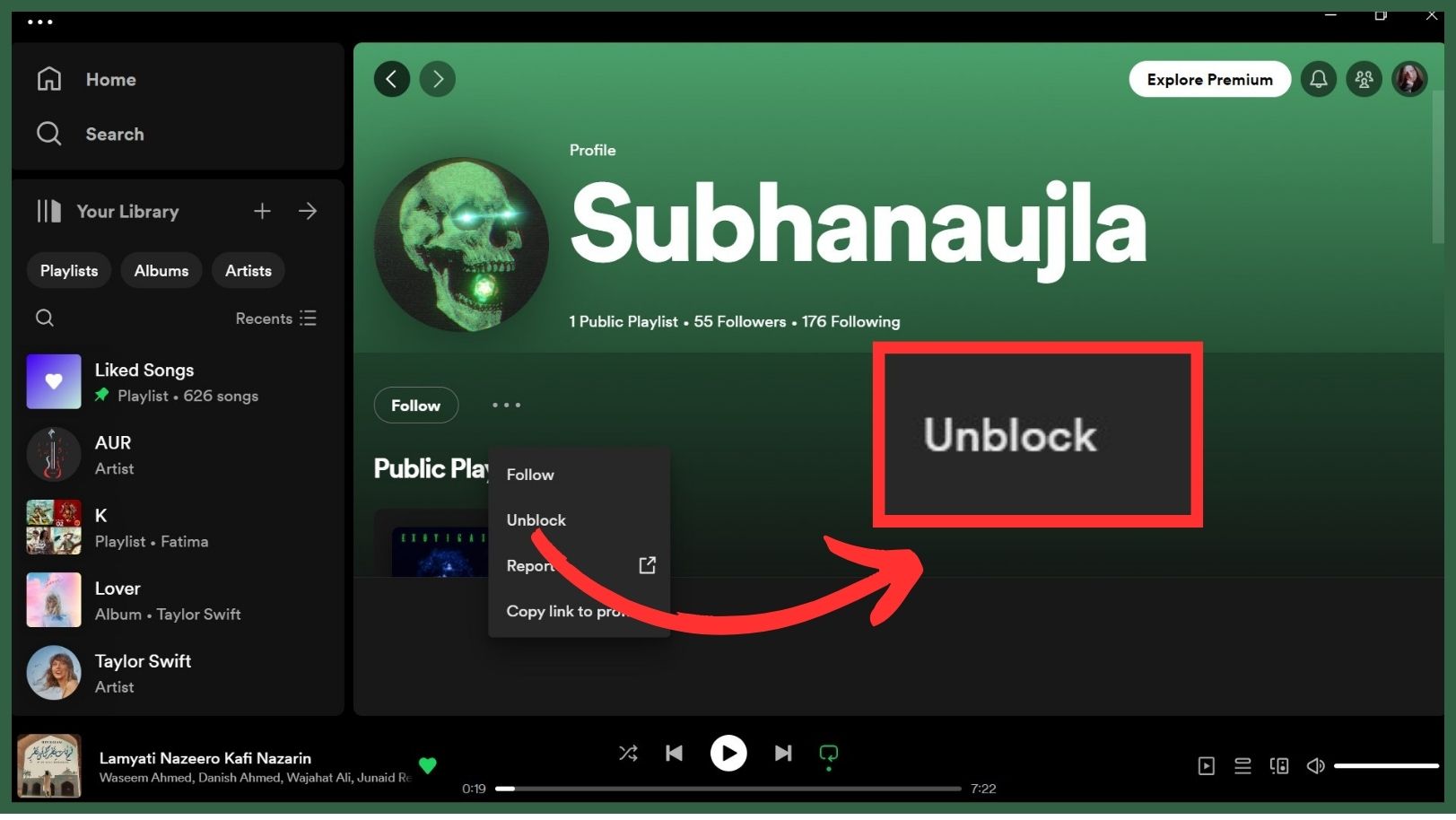 The steps to unblock someone are almost the same whether you’re using the desktop app on a PC or Mac, or if you’re using Spotify in a web browser.