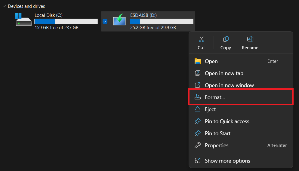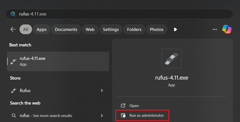 Important: Rufus may choose FAT32 or NTFS automatically depending on the ISO and your settings. The goal here is simply to start from a clean state, Windows formatting here is not meant to “pick the final” file system for the boot USB.