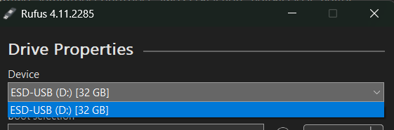Why FAT32 here? It’s widely compatible and works as a simple “clean slate” format. Rufus will still recreate the correct layout later.