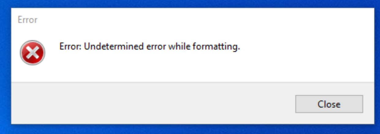 If Rufus shows “Undetermined error while formatting”, it means Rufus failed during the formatting step (preparing the USB so files can be written to it) before it could write the bootable image. When this happens, Rufus stops and you can’t finish creating a bootable USB (for example, a Windows installer).