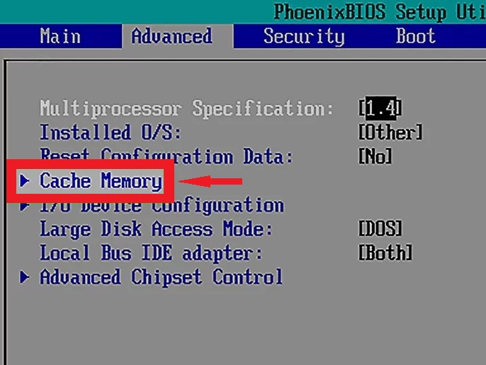 Now that you have booted into BIOS, follow the steps below to disable memory caching: