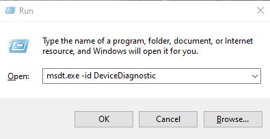 - Press the Win + R keys and enter: msdt.exe -id DeviceDiagnostic.