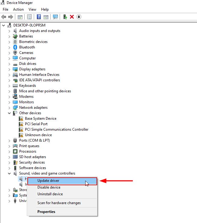 - Click on the small drop-down arrow next to the Sound, video, and game controllers menu to expand it.