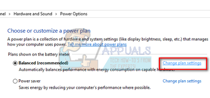 - There will be many plans listed in the window. Click on “Change plan settings” in front of the power plan which is currently active on your computer.