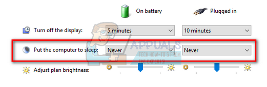 - On this window, you will see an option “Put the computer to sleep”. Make sure that the option is set to as “Never” in both conditions (on battery and plugged in). Click “Save changes” and exit.