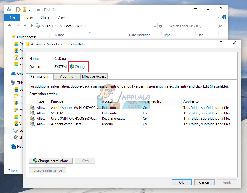 - If you are using Windows 10, right-click on the Cygwin folder and open Properties >> Security. Click on Advanced and you should see the “Owner:” on top with an account linked to it.