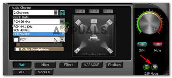 As it turns out, this problem is most commonly being caused by a setting inside the Xonar DX Control Center. A lot of users encountering this issue have managed to fix the issue by deactivating the GX DSP Mode via the GX button.
