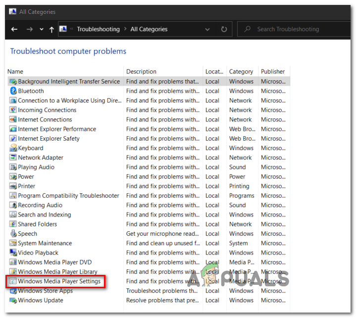 Here’s a quick guide that will show you how to run the Windows Media Player Settings troubleshooter and automatically apply the recommended repair strategy in case a familiar issue is discovered: