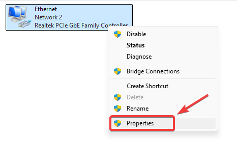 - Right-click your active network connection and select Properties.