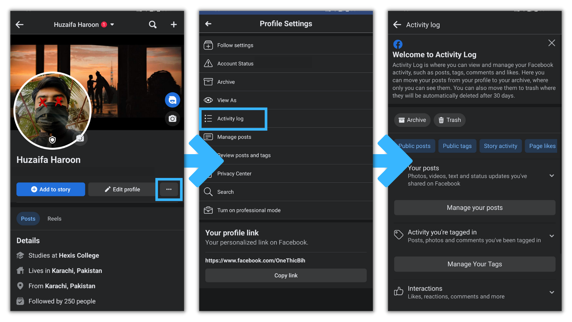 - Tap your profile picture to navigate to your profile, then tap the ellipsis button.