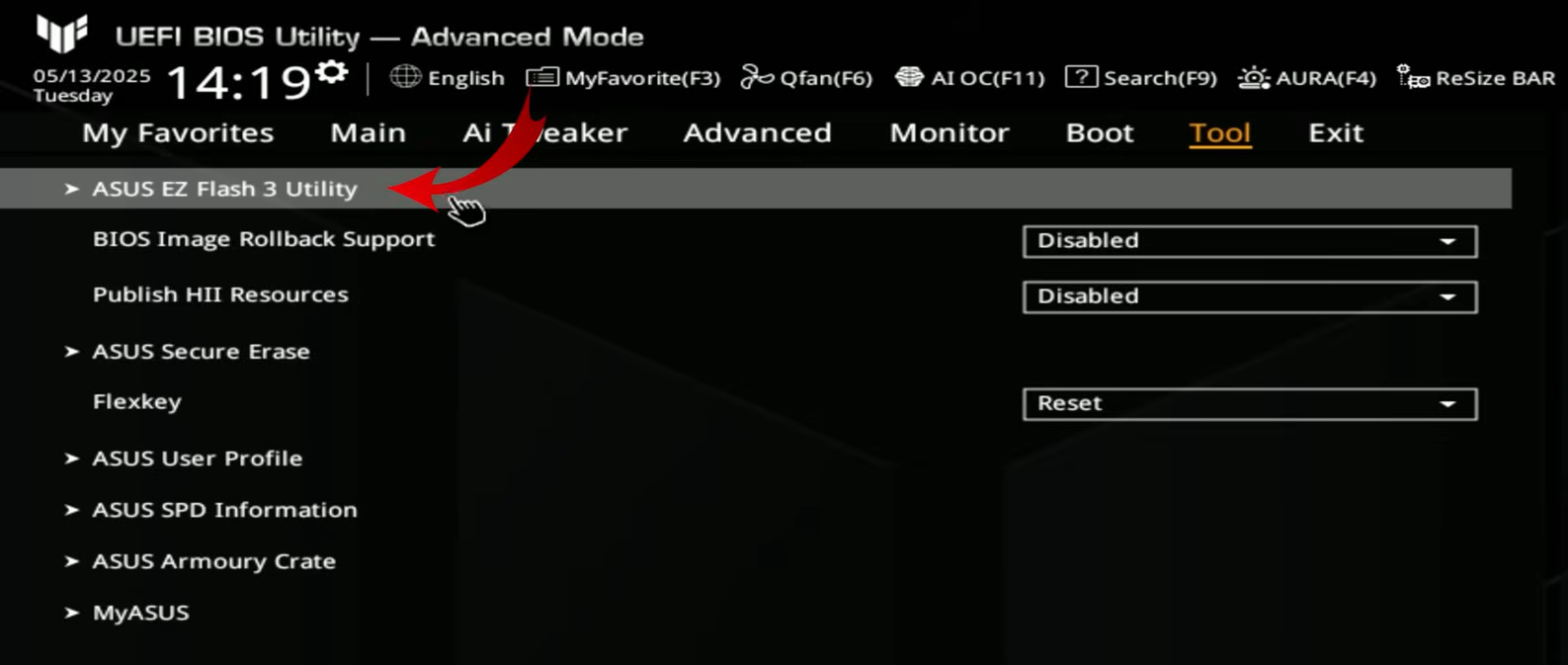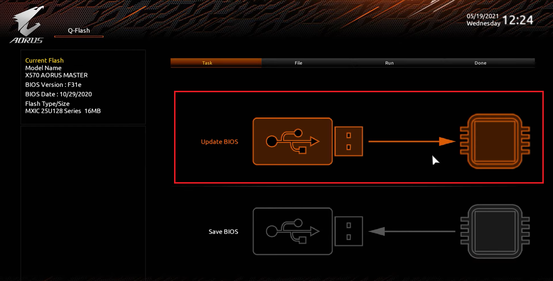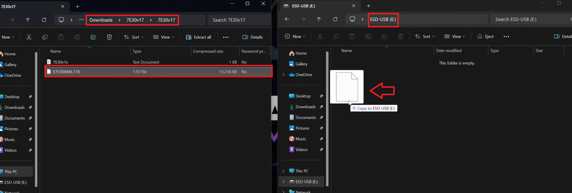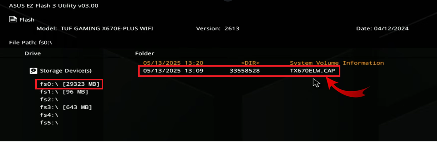 - Copy the BIOS file to the USB drive (formatted as FAT32).