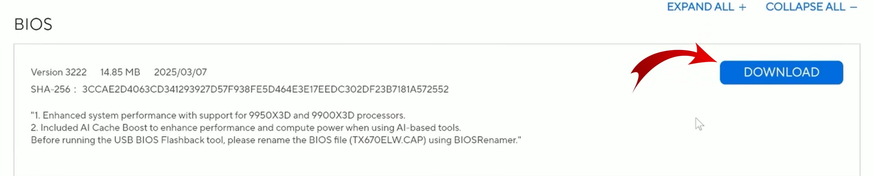 - Extract the downloaded ZIP file and copy the BIOS file to a USB flash drive formatted as FAT32.