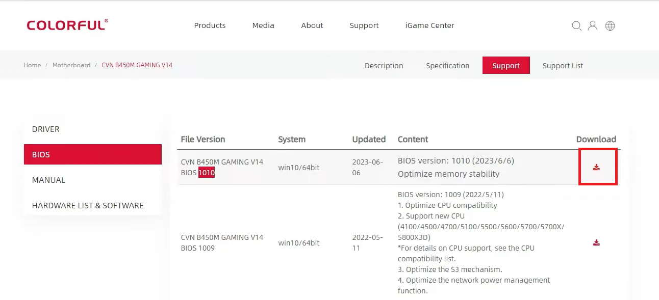 - Visit the official Colorful support website and download the latest BIOS file for your exact motherboard model.