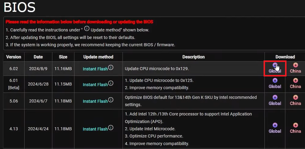 - Download the exact BIOS file for your motherboard (including revision, if your board has one).