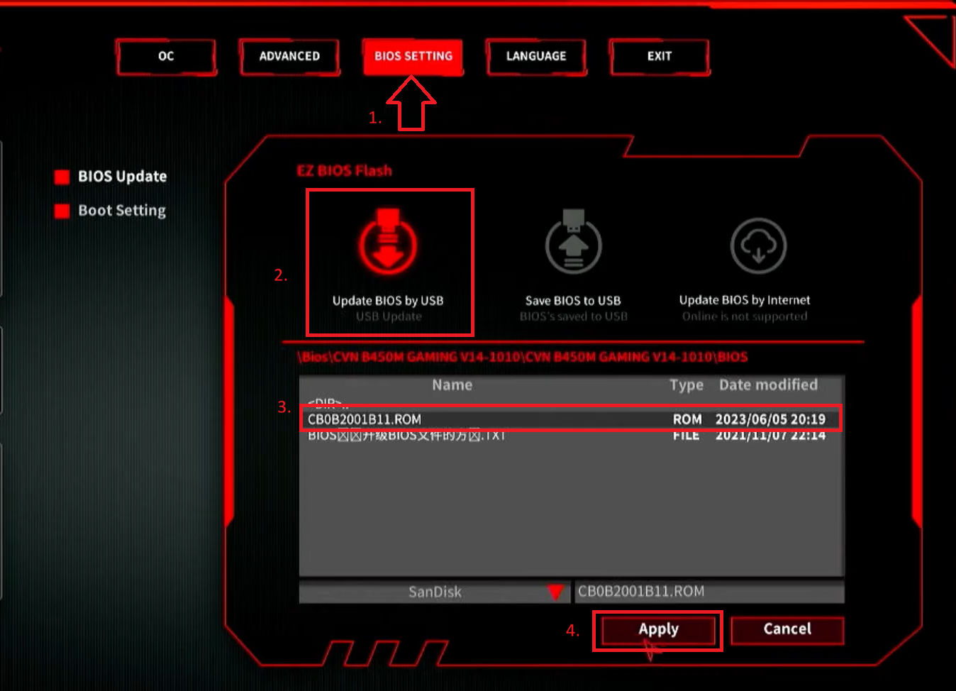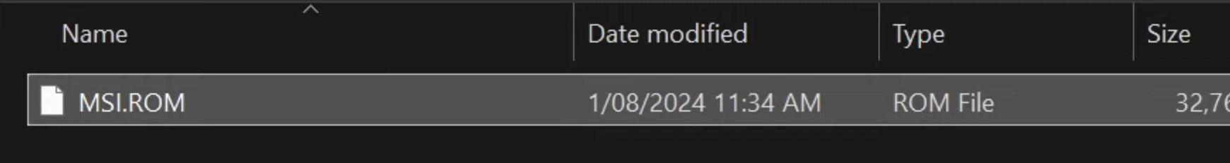 - Rename the BIOS file as instructed by MSI (commonly MSI.ROM).