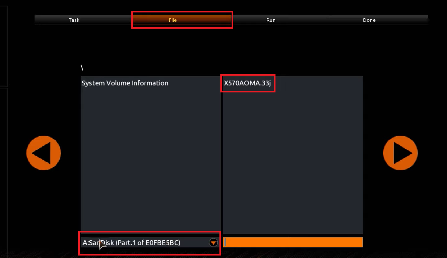 - In the File tab, select the USB drive and BIOS file, then click Next.