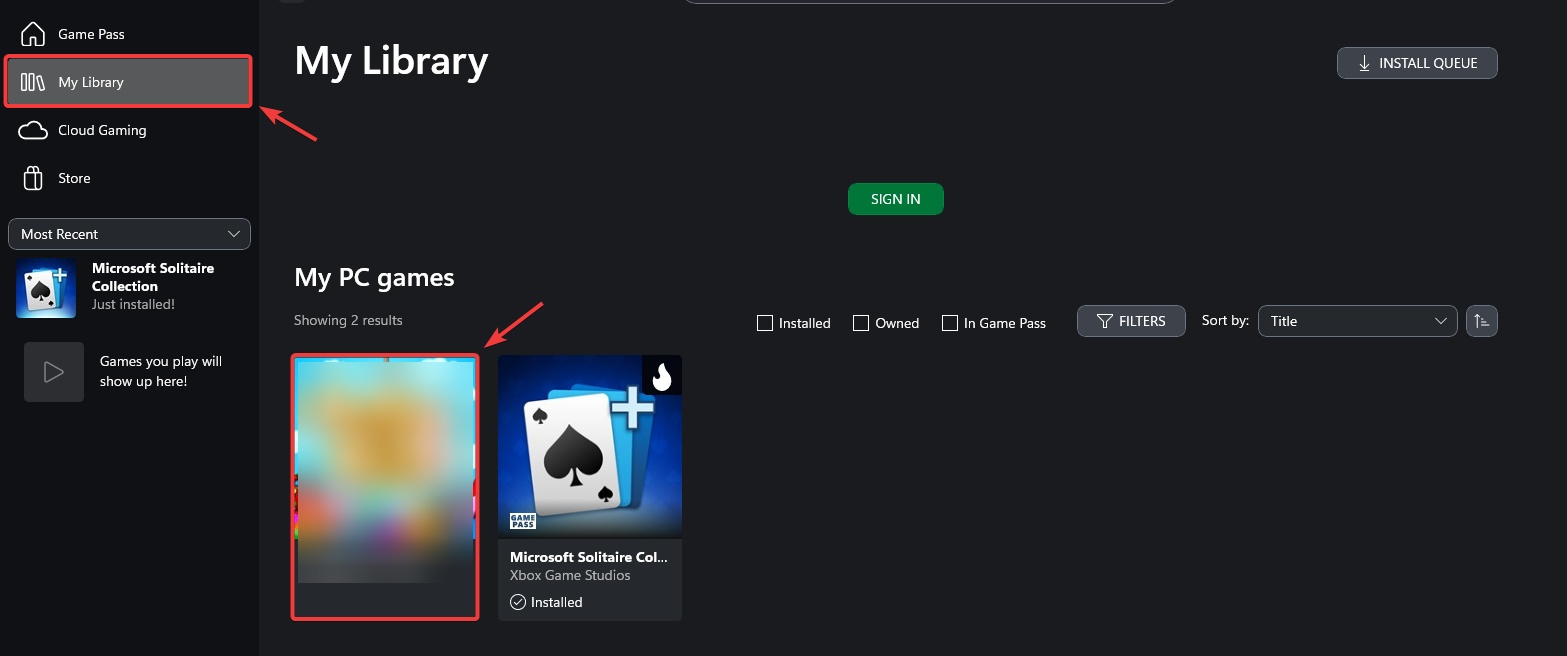 - Navigate to My Library from the top left and select Minecraft for Windows from the list of installed games.