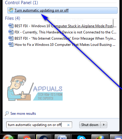 - Search for “turn automatic updating on or off“.