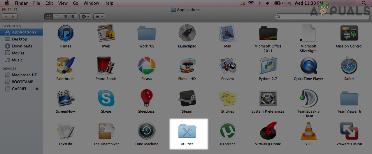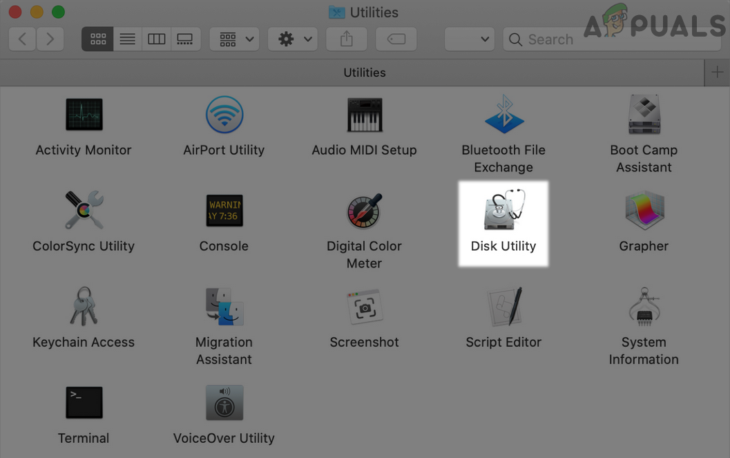 Open Utilities in the Applications folder of the Mac - Now select Utilities and open the Disk Utility.