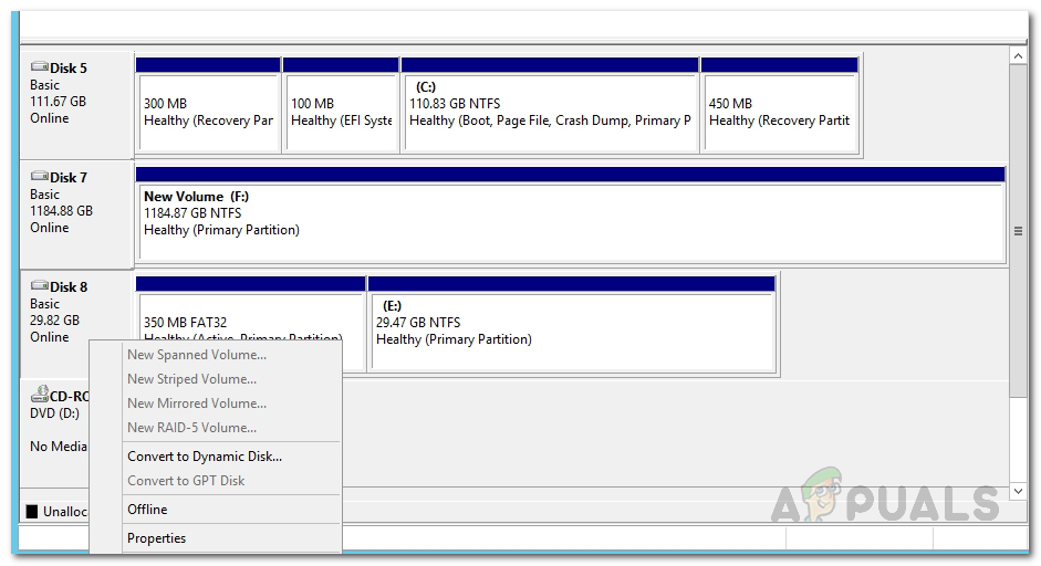 Disk Management Console - The problem with Disk Management Console is that it does not show the offline option for all USB devices and thus if you have a small USB storage drive, you might not get an offline option. In such a case, you won’t be able to use passthrough.