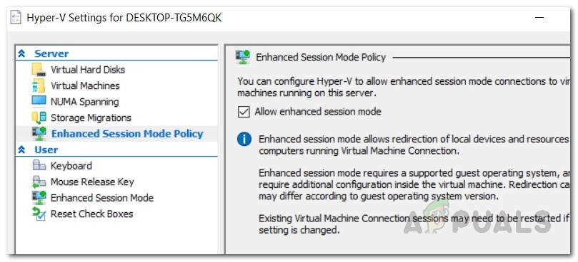 If you do not know Enhanced Session mode, it basically is a feature that helps in redirecting the local resources and devices to the virtual machine. If your system is running Windows 10 or Windows 8.1, you already have this mode enabled by default. In case your Hyper-V host is running Windows Server 2012 or Windows Server 2016, you will have to manually enable it.