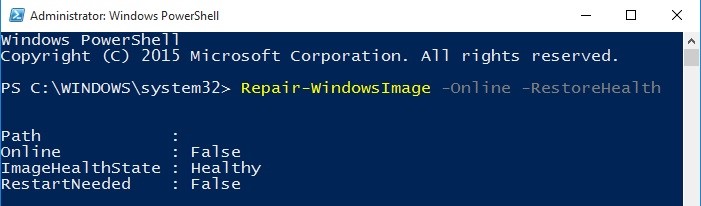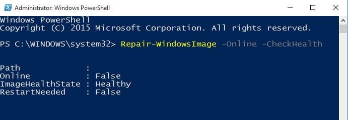 Repair-WindowsImage -Online –CheckHealth