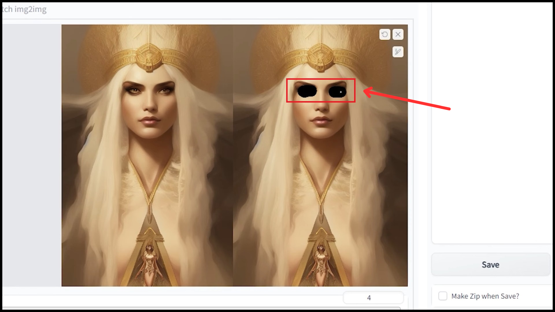With the inpainting tool, you can pick the part of the image you want to fix, and then the tool will automatically generate a new image. It fills in what’s missing or wrong, making the image look good again. If you want to use it, look for the “Inpaint” option in the img2img section. Here’s a step-by-step guide on using Inpaint to make eyes look just right: